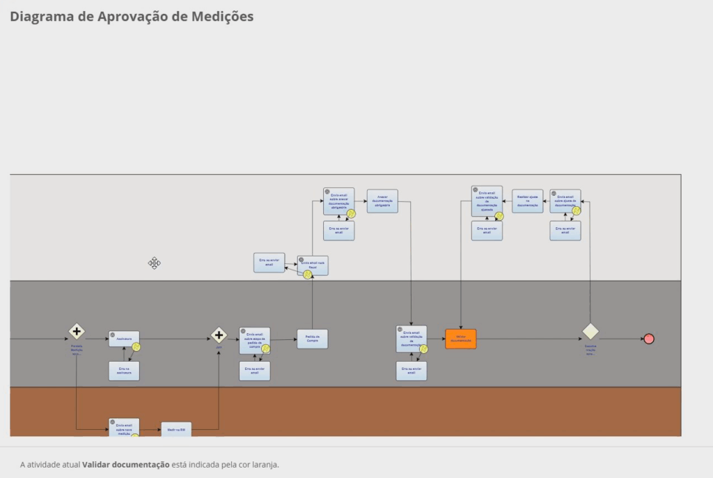 O processo segue para o financeiro sem necessidade de digitação manual. Em todas as etapas, a empresa consegue acompanhar em tempo real o andamento da medição e identificar rapidamente eventuais gargalos.